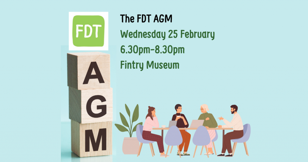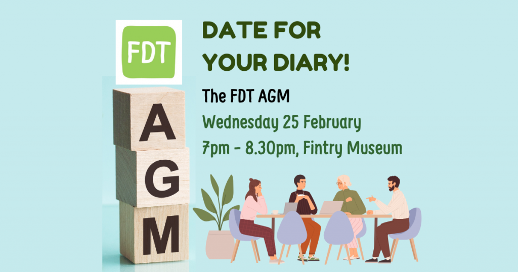 The FDT Annual General Meeting will be held on Wednesday 25th February 2026, from 7 – 8.30 pm, in Fintry Museum. Please add the date to your diary and join us to hear our news and reports. Please note only members may vote at our AGM. If you would like to become an FDT member, […]